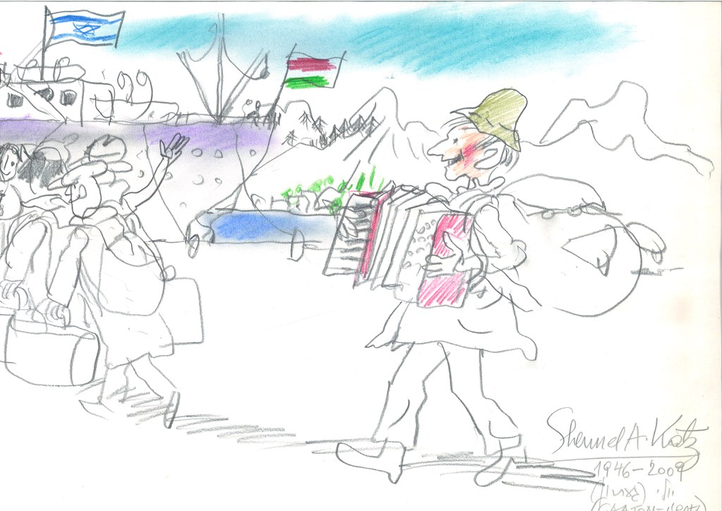 Geboren 1926 in Wien als Sohn des Kantors der Synagoge in der Siebenbrunnengasse im 5. Bezirk ("Jubiläumstempel", eingeweiht zum 60. Thronjubiläum von Kaiser Franz Josef I.). Nach dem "Anschluss" 1938 mussten er und seine zwei Jahre jüngere Schwester Marianne die Schule verlassen. Sie flüchteten nach Ungarn, wo er zeitweise in einem Arbeitslager festgehalten wurde. Nach der Besetzung des Landes durch die Deutsche Wehrmacht 1944 entkam er mit Hilfe des Schweizer Diplomaten Carl Lutz in Budapest den Deportationen der jüdischen Bevölkerung. 1946 emigrierte Katz mit einem illegalen Transport nach Palästina, wo er – nach einem Aufenthalt in einem britischen Internierungslager auf Zypern – 1947 ankam. Er war Mitbegründer des Kibbuz Ga’aton, in dem er bis zu seinem Tod im Jahr 2010 lebte. Er belieferte als Zeichner nicht nur israelische Tageszeitungen, sondern auch das berühmte Schweizer Satiremagazin „Nebelspalter“ mit Karikaturen, außerdem illustrierte er zahlreiche Kinderbücher. Auch seine Gerichtssaal-Zeichnungen vom Prozess gegen Adolf Eichmann machten ihn bekannt. Er stellte u.a. 1977 in Teheran aus, besuchte 1979 Ägypten, wo er Präsident Sadat interviewte. Als Mitglied von Peace Now besuchte er 1983 Ungarn. Als Ende 2007 in Holon bei Tel Aviv ein neues „Karikaturenmuseum“ eröffnet wurde, war Shemuel Katz der erste Preisträger des neu geschaffenen „Golden Pencil“ – einer Anerkennung für sein Lebenswerk.